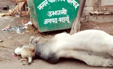 उझानी(बदायूं)। नगर के भदवारगंज इलाके में जर्जर बिजली पोल पर शनिवार से उतरे करंट से गौवंशीय सांड और गर्भवती गाय...
