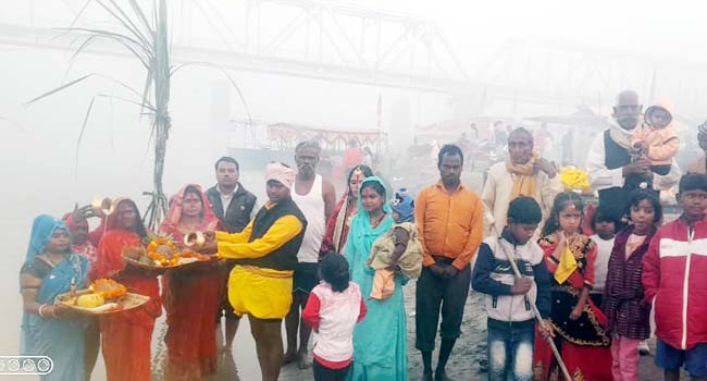महाछठ पर्व मनाने जुटी महिलाओं ने गंगा तट पर भगवान भास्कर की पूजा अर्चना की और सूर्य नारायण की उपसना करते हुए हवन-पूजन किया। व्रत कर रही महिलाओं ने उगते हुए सूरज के दर्शन करने के साथ उन्हें अर्ध्य देकर उनकी पूजा अर्चना की। इस अवसर पर जुगनू कलावती राजेश्वरी मुन्नी देवी मीरा देवी रीता कैलाश गुडिया देवकुमार विष्णु मीरा वंदना बीरेन्द्र सोनम आदि मौजूद रहे।