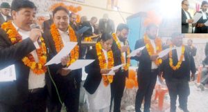 इसके उपरांत निर्विरोध विजयी हुए वरिष्ठ कार्यकारिणी के दो सदस्यों और फिर कनिष्ठ कार्यकारिणी के सदस्यों नीरज सक्सेना, सुमन कश्यप, राष्ट्रगौरव, कुमार कुलश्रेष्ठ, सतीशपाल, पवन गौतम को पद एवं गोपनीयता की शपथ दिलाई गई। इस दौरान निवर्तमान अध्यक्ष पवन गुप्ता और सचिव अरविन्द परमार ने नई सरकार को कार्यकाल सौंपा। इस दौरान महासचिव संदीप मिश्रा ने अधिवक्ताओं को भरोसा दिलाया कि उनकी हर समस्या का समय रहते समाधान कराया जाएगा और वह हर वक्त अधिवक्ताओं के साथ खड़े हैं।
