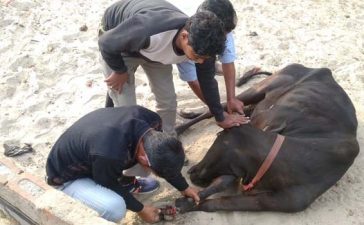 घायल गायों के इलाज को आगे आए बजरंग दल कार्यकर्ता, कराया इलाज