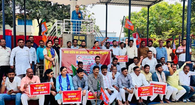 संविधान निर्माता डा. भीमराव अम्बेडकर के प्रति सपा प्रमुख अखिलेश यादव की ऐसी मानसिकता से नाराज भाजपा कार्यकर्ता बुधवार की दोपहर अम्बेडकर पार्क पर एकत्र हुए और बाबा साहेब का जयघोष को गुंजायमान करते हुए सपा के खिलाफ सांकेतिक धरना और विरोध प्रदर्शन किया। इस अवसर पर भाजपा के प्रदेश मंत्री डीपी भारती ने कहा समाजवादी पार्टी ने जो पोस्टर लगाया है इसके माध्यम से सपा अध्यक्ष अखिलेश यादव जो संदेश देना चाहते हैं, उसकी हम लोग निंदा करते हैं। उन्होंने कहा सपा प्रमुख अखिलेश यादव खुद को बाबा साहब भीमराव अम्बेडकर के बराबर समझ रहे हैं, वो उनके पैरों की धूल भी नहीं हैं इस हरकत के लिए उन्हें देश की जनता माफ नहीं करेगी।