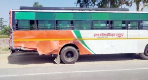 एटा जिले मरहेची निवासी बस ड्राइवर धर्मवीर ने रोडवेज बस चालक है। धर्मवीर एटा डिपो की बस लेकर बरेली जा रहा था। बताते हैं कि आज सुबह दस बजे के करीब चालक उझानी क्षेत्र के गांव जजपुरा स्थित खाटू श्याम मंदिर के समीप बस एक ओर लगाकर सवारी उतार रहा था तभी पीछे से आ रहे अनियंत्रित टैंकर ने बस में जोरदार टक्कर मार दी जिससे बस में बैठे यात्रियों में अफरा तफरी मच गई। गनीमत रही कि रूकी बस में टैंकर ने टक्कर मारी अन्यथा बड़ा हादसा हो सकता था। बस चालक ने हादसे की सूचना सिविल लाइन पुलिस को दी जिस पर पुलिस मौके पर पहुंची और टैंकर को अपने कब्जें में ले लिया है। पुलिस ने बस चालक की तहरीर पर कार्रवार्र शुरू कर दी है।