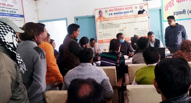 उझानी,(बदायूं)। नगर पालिका परिषद उझानी के नवीन सभागार मे असंगठित कर्मकारों का ई-श्रम पोर्टल पर निःशुल्क पंजीयन के अन्तर्गत 16 वर्ष से 59 वर्ष तक के 104 व्यक्तियों का निःशुल्क पंजीयन कराया गया।