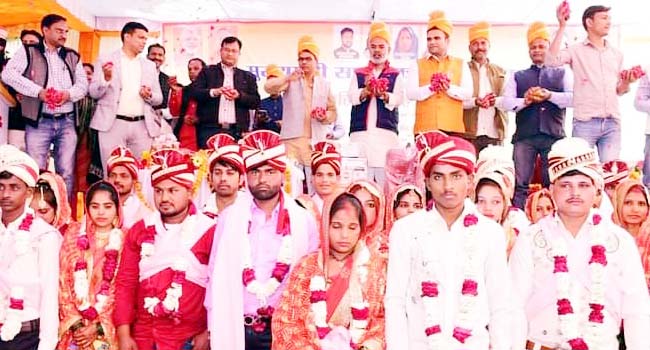 बदायूं 7 मार्च। उप्र सरकार की महत्वाकांक्षी मुख्यमंत्री सामूहिक विवाह योजनान्तर्गत बदायूं में अनुसूचित जाति,अनुसूचित जनजाति, अन्य पिछड़ा वर्ग,अल्पसंख्यक वर्ग एवं सामान्य वर्ग के निर्धन/गरीब व्यक्तियों की पुत्रियों के विवाह का आयोजन गुरूवार को जनप्रतिनिधियों एवं समाज के गणमान्य व्यक्तियों की गरिमामयी उपस्थिति में किया गया। जनपद को हिन्दू-203 मुस्लिम-01 सहित कुल 204 जोड़े विवाह के पवित्र बंधन में बंधे।