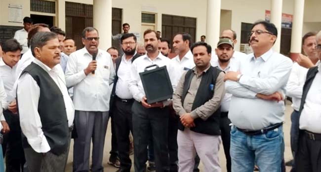 सहसवान(बदायूं)। एसडीएम और तहसीलदार के भ्रष्ट रवैया और मनमानी के खिलाफ अधिवक्ताओं ने 20 वें दिन भी न्यायालय का बहिष्कार जारी रखा। अधिवक्ताओं ने कचहरी परिसर में जुलूस निकाल कर एसडीएम और तहसीलदार के खिलाफ जमकर नारेबाजी की और कहा कि वह अपनी मांग पर कायम है और जब तक दोनों का तबादला या कार्रवाई नही हो जाती है तब तक उनका आंदोलन जारी रहेगा।