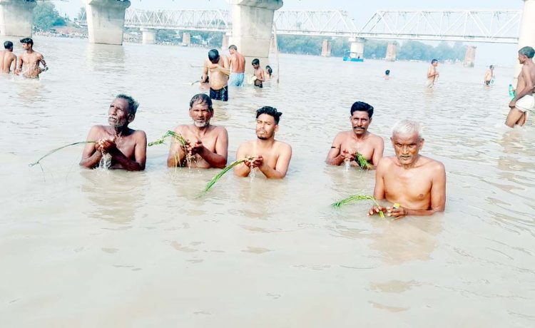 उझानी,(बदायूं)। श्राद्ध पक्ष जलदान पूर्णिमा पर बड़ी संख्या में मां भागीरथी के तट पर जुटे लोगों ने गंगा स्नान के उपरांत विधि विधान से अपने पितरों को जलदान देकर तर्पण किया और उनसे आशीर्वाद मांगा। गंगाजल से जलदान करने का सिलसिला शाम तक जारी रहा।