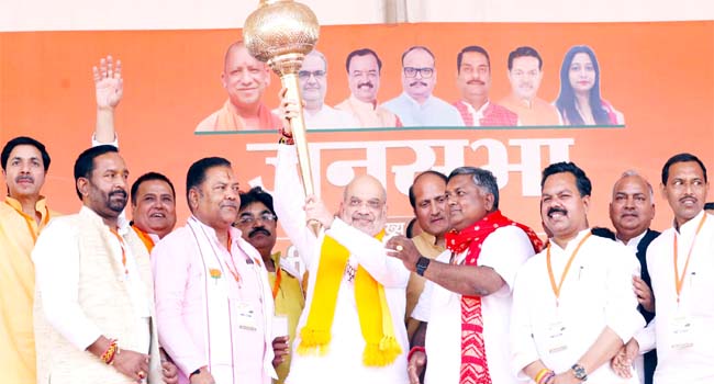 बदायूं में अमित शाह ने भरी हुंकारः बोले- यह मोदी सरकार है आतंकियों को घर में घुस कर मारती है