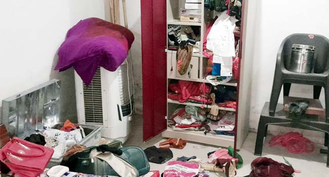 नगर के अहिरटोला इलाके में बाइपास हाइवे पर रहने अजय साहू पुत्र धर्मपाल साहू के घर बीती रात लगभग दो बजे के करीब छत के जरिए असलाहधारी बदमाश घर के अंदर घुस गए और सभी परिजनों को सोते वक्त ही दबोच लिया और अजय साहू और उसकी पत्नी एवं बच्चों को बेसमेंट में बंधक बना लिया और सभी को शोर मचाने पर जान से मारने की धमकी देने के बाद गन प्वाइंट पर ले लिया। बदमाशों ने घर में रखी एलईडी के अलावा सोने चांदी के जेवरात, 60 हजार की नकदी लूट ली।