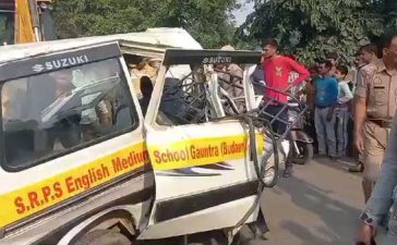 स्कूल वाहनों की टक्कर में चार बच्चो समेत चालक की मौत, 15 स्कूली बच्चे घायल