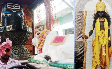 उझानी में धूमधाम के साथ निकाली गई माता शीतला की शोभायात्रा, नागरिकों ने बरसाए फूल