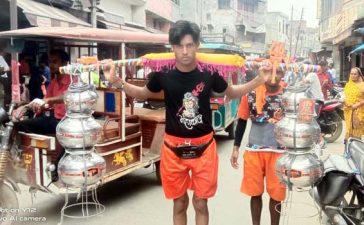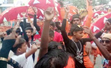 बरसात भी कम न कर सकी शिव भक्त कांवरियों का जोश, नाचते झूमते निकल रहे हैं कांवरियां