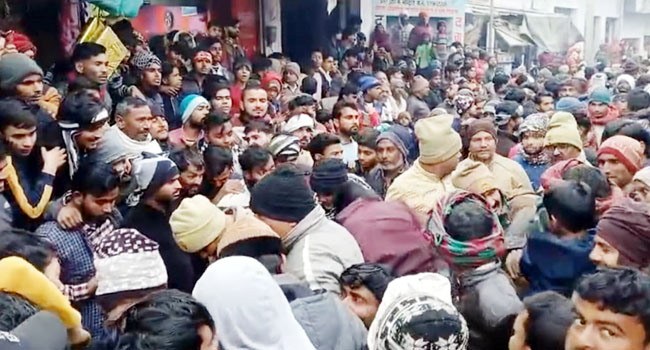 बदायूं। जिले के थाना उघैती क्षेत्र के कस्बा खितौरा के बाजार में शुक्रवार की सरेशाम पुलिस और कानून से बेखौफ हथियारबंद बदमाशों ने एक सर्राफ की दुकान में घुस कर लाखों रुपया की नकदी और जेवरात लूट लिए। बदमाश बुलंद हौंसलों के साथ तमंचा लहराते हुए बाइक पर सवार होकर भागने लगे तभी व्यापारियों और ग्रामीणों ने हिम्मत जुटा कर बदमाशों को पकड़ लिया और उनकी जमकर पिटाई कर दी। लूट की सूचना पर पहुंची पुलिस ने बदमाशों को अपनी गिरफ्त में ले लिया। पुलिस को बदमाशों के कब्जें से तमंचे बरामद हुए है। इस घटना से आक्रोशित व्यापारियों ने कस्बें मंे जाम लगा दिया और देर शाम पहुंचे पुलिस अधिकारियों के सुरक्षा के आश्वासन पर शांत हुए।
