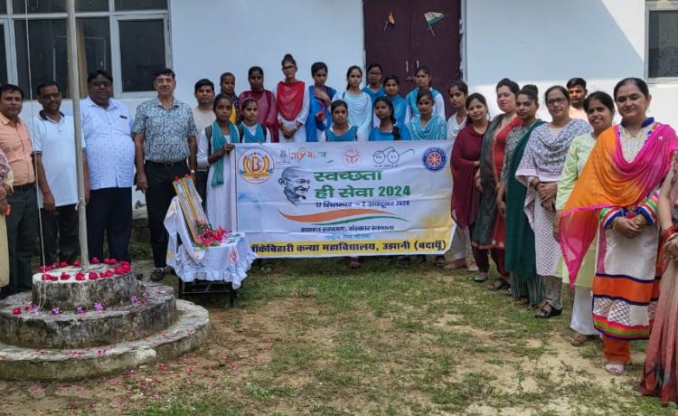 उझानी( बदायूं)I बांके बिहारी कन्या महाविद्यालय में राष्ट्रपिता महात्मा गांधी की 155वीं और पूर्व प्रधानमंत्री लाल बहादुर शास्त्री जयंती धूमधाम के साथ मनाई गई। इस अवसर पर दोनों नेताओं को विद्यार्थियों और शिक्षकों ने उसे अर्पित कर भावभीनी श्रद्धांजलि दी और इसके बाद आसपास क्षेत्र में स्वच्छता अभियान चलाया।