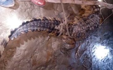 सहसवान में गंगा से निकल गांव में पहुंचा मगरमच्छ, वन विभाग की टीम ने पकड़ कर गंगा में छोड़ा