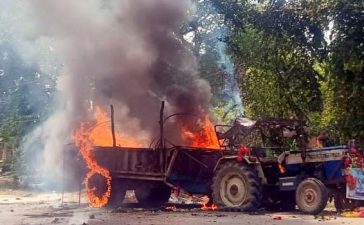 गुस्साएं साथी कांवड़ियों ने हादसे को अंजाम देने वाले ट्रैकटर ट्राली को किया आग के हवाले, एक घंटे तक हाइवे...