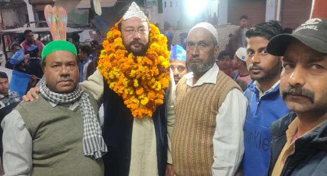 आजाद समाज पार्टी के प्रत्याशी बाबर मियां का चांदी का मुकुट पहना कर नागरिकों ने किया स्वागत