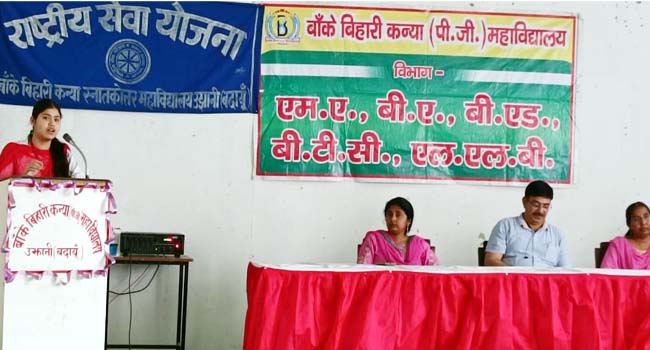उझानी,(बदायूं)। बांके बिहारी कन्या पीजी महाविद्यालय के गांव जिरौली में चल रहे सात दिवसीय एनएसएस शिविर का सांस्कृतिक कार्यक्रमो के साथ समापन हो गया ।