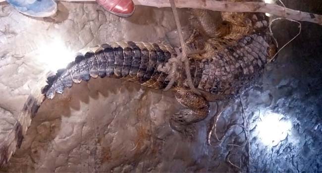 बदायूं। जनपद की तहसील सहसवान के एक गांव में उस समय हड़कंप मच गया जब एक भारी भरकम मगरमच्छ अचानक गांव में घुस गया। गांव में मगरमच्छ को देखकर ग्रामीणों की सिट्टी बिट्टी गुम हो गई। गांव में मगरमच्छ के होने की खबर फैल गई। जिससे ग्रामीणों में दहशत फैल गयी और अफरा.तफरी मच गई। इसकी सूचना तुरंत वन विभाग को दी कुछ देर बाद आई वन विभाग टीम ने रेस्क्यू करके मगरमच्छ को पकड़कर गंगा में सुरक्षित छोड़ दिया।