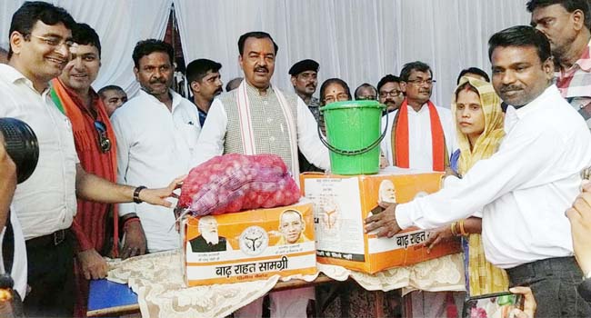 उपमुख्यमंत्री ने बाढ़ राहत केन्द्र में रह रहे बाढ़ से प्रभावित लोगो को आटा, चावल, दाल, नमक, हल्दी, मिर्च, पिसी धनिया, रिफाइंड तेल तथा आलू के पैकेट का वितरण तथा महिलाओं को अलग से डिग्निटी किट का भी वितरण किया साथ ही साथ उन्होंने लाई, भूना चना, गुड़, मोमबत्ती, माचिस, बिस्कुट, साबुन का अलग से पैकेट तथा पीने का पानी भी बाढ़ राहत केन्द्र में रह रहे लोगो को वितरित किए।