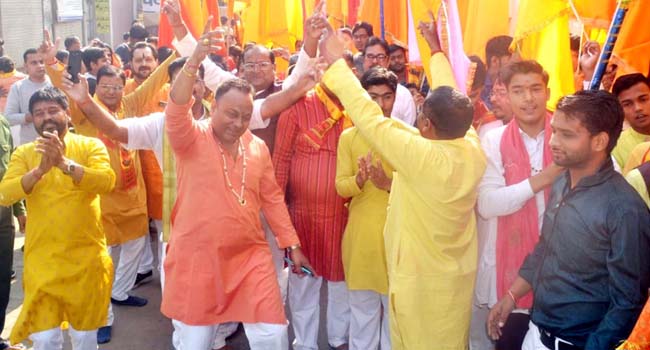 कोविड 19 की छाया के चलते सभी धार्मिक अनुुष्ठान आदि नही हो पा रहे थे। इस वर्ष कोविड की परछाई से निकलने के बाद श्याम भक्तों ने खाटू नरेश श्याम बाबा का जन्मोत्सव दूने उत्साह के साथ मनाया। खाटू श्याम महोत्सव मनाने के जुटे भक्तों ने आज सुबह कालेज रोड पर झंडी पूजन में प्रतिभाग किया और श्याम बाबा का पूजन अर्चन श्रद्धाभाव के साथ कर सभी के कल्याण की प्रार्थनाएं की। बाबा श्याम की पूजा अर्चना के उपरांत खाटू नरेश की भव्य शोभायात्रा सुबह दस बजेे कालेज रोड से प्रारंभ हुुई। बाबा की शोभायात्रा निकलने से उत्साहित भक्त बाबा के निशान के साथ भावविभोर होकर जमकर थिरक रहे थे। दो साल के बाद निकली बाबा की शोभायात्रा का नगर में फूल मालाओं के साथ भव्य स्वागत किया। शोभायात्रा कालेज रोड, स्टेशन रोड, मुख्य चैराहा और बदायूं रोड होती हुई सात किलोमीटर दूर जजपुरा गांव स्थित बाबा श्याम मंदिर पर पहुंच कर धार्मिक अनुष्ठानों में परिवर्तित हो गई। मंदिर पर भक्तों ने बाबा के दर्शन कर प्रसाद का भोग लगाया और इसके बाद ही आयोजित भण्डारे में प्रसाद ग्रहण किया। इस मौके पर हजारों की संख्या में बाबा के भक्त मौजूद रहे।