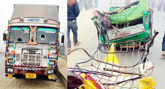 शाहजहांपुर। उत्तर प्रदेश के जनपद शाहजहांपुर में घने कोहरे के चलते गंगा स्नान करने जा रहे श्रद्धालुओं से भरे टैम्पों की सामने से आ रहे ट्रक सीधी टक्कर हो गई जिसके परिणाम स्वरूप टैम्पों सवार एक दर्जन श्रद्धालुओं की मौके पर ही मौत हो गई। हादसा इतना भयावह था कि टैम्पों के परखच्चें उड़ गए। प्रदेश के सीएम योगी ने हादसे पर दुख जताते हुए मृतकों को श्रद्धांजलि दी है। पुलिस ने शवों का पीएम करा कर परिजनों को सौंप दिए हैं।