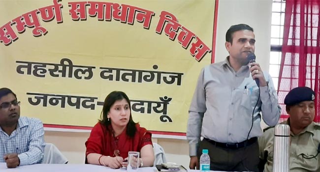 शनिवार को मण्डलायुक्त बरेली मण्डल बरेली सौम्या अग्रवाल ने अपर जिलाधिकारी प्रशासन विजय कुमार सिंह, उप जिलाधिकारी धर्मेन्द्र कुमार सिंह सहित अन्य अधिकारियों के साथ तहसील दातागंज में आयोजित सम्पूर्ण समाधान दिवस में फरियादियों की शिकायतों को सुनकर अधिकारियों को गुणवत्तापूर्वक एवं समयवद्ध निस्तारण करने के निर्देश दिए हैं। मण्डलायुक्त ने समस्त संबंधित विभागीय अधिकारियों को कड़े निर्देश दिए कि शिकायतों का निस्तारण प्राथमिकता के आधार पर किया जाए। शिकायतों के निस्तारण में किसी भी स्तर पर लापरवाही न बरती जाए।