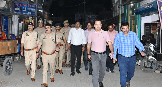डीएम ने अधिकारियों के साथ मंगलवार की रात शहर में किया पैदल भ्रमण