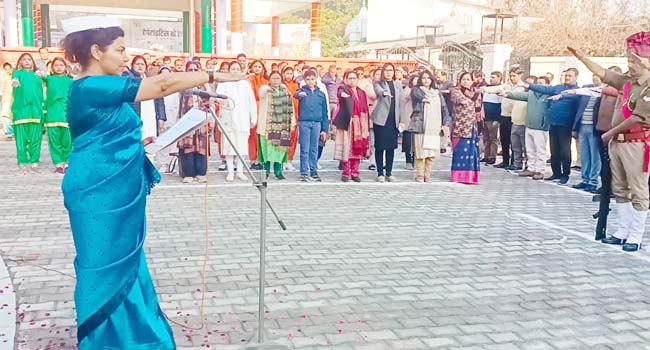 बदायूं। जिलाधिकारी निधि श्रीवास्तव ने रविवार को 76वें गणतंत्र दिवस के अवसर पर कलेक्ट्रेट में ध्वजारोहण किया। उन्होंने उपस्थित सभी अधिकारियों व कर्मचारियों को संविधान की प्रस्तावना का पाठन भी कराया। वहीं कलेक्ट्रेट सभागार में आयोजित कार्यक्रम में उन्होंने टीबी मरीजों को पोषण पोटली दी। इसके उपरांत जिलाधिकारी ने कलेक्टर स्थित शहीद स्थल पर पुष्प अर्पित कर अमर शहीदों को श्रद्धांजलि दी।