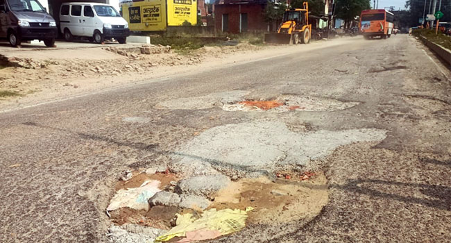 उझानी,(बदायूं)। नगर के अम्बेडकर चौराहें के समीप दिल्ली हाइवे पर बीच सड़क में कई गहरे-गहरे गड्ढे हो गए है जो अब वाहन चालको को जानलेवा साबित हो रहे है इसके बाबजूद लोक निर्माण विभाग के अधिकारियों ने गड्ढों को भरने एवं पक्की मरम्मत कराने की जरूरत नही समझी है जिसका परिणाम छोटे वाहन चालको को घायल होकर भुगतना पड़ रहा है। लोनिवि के अधिकारी तो किसी बड़े हादसे के इंतजार में है।