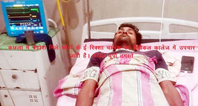 बताते हैं कि पूरी रात जब ई रिक्शा चालक न मिला। गुरूवार की सुबह परिजनों को सूचना मिली कि कछला में रेलवे फाटक के समीप बाजार बाग में एक युवक बेहोश पड़ा हुआ है इस सूचना पर परिजन मौके पर पहुंचे और उसकी शिनाख्त शिशुभान के रूप में की और पुलिस को सूचना दी। बताते हैं कि मौके पर पहुंची पीआरवी पुलिस ने बेहोश युवक को इलाज के लिए मेडीकल कालेज भेज दिया है। ई रिक्शा चालक के भाई महाराज सिंह ने बताया कि उसके भाई का ई रिक्शा और सात हजार रुपया की नकदी के अलावा उसका मोबाइल बदमाश लूट कर ले गए हैं। फिलहाल पुलिस ने इस मामले को अभी दर्ज नही किया है।