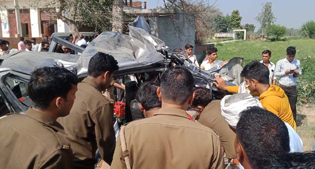 बदायूं के हजरतपुर थाना क्षेत्र के गांव जमालपुर निवासी टिपल्लू (50), बलवीर (35), दुर्वेश (25), धर्मेंद्र समेत लगभग एक दर्जन ग्रामीण हरियाणा के चरखी दादरी में रहकर मजदूरी करते हैं। बुधवार को सभी लोग ईको कार से होली मनाने वापस गांव लौट रहे थे। बताते है कि आज दोपहर मजदूरों से भरी कार मुजरिया थाना क्षेत्र के हाइवे स्थित गांव मटकुली के समीप पहुंची ही थी कार चालक ने किसी वाहन से ओवरटेक करने का प्रयास किया मगर सामने रोडवेज बस खड़ी देख कार चालक का नियंत्रण कार से खो गया और कार सीधेे रोडवेज बस से जा टकराई। बताते है कि हादसा इतना जबरदस्त था कि कार के परखच्चें उड़ गए और कार सवारों मंे चीख पुकार मच गई। हादसे पर जुटे ग्रामीणों ने मुजरिया पुलिस को सूचना दी। मौके पर पहुंची पुलिस ने ग्रामीणों के सहयोग से चकनाचूर हो चुकी कार में फंसे मजदूरों को बाहर निकाला लेकिन तब तक टिपल्लू, बलवीर व दुर्वेश की मौत हो चुकी थी। पुलिस ने घायल आधा दर्जन मजदूरों को उपचार के लिए जिला अस्पताल भेज दिया। जिला अस्पताल में धर्मेन्द्र नामक मजदूर की मौत हो गई। अस्पताल में डाक्टरों ने महिला पूजा समेत तीन की गंभीर हालत मानते हुए हायर सेंटर रैफर कर दिया है। पुलिस ने मृतकों के घर हादसे की सूचना दी तब मृतकों के परिवारों समेत पूरे गांव में मातम पसर गया। परिजन रोते बिलखते जिला अस्पताल पहुंच गए। पुलिस ने शवों को अपने कब्जें में लेकर पीएम कराने के बाद परिजनों को सौंप दिया है जबकि क्षतिग्रस्त वाहनों को अपने कब्जें में ले लिया है।