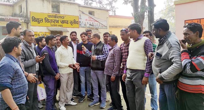 प्रदेश संगठन मंत्री हरीश चंद्र यादव ने बताया कर्मचारियों को सुरक्षा किट भी उपलब्ध नहीं कराई जा रही है और ना ही विभागीय वर्दी उपलब्ध कराई गई है। विभागीय अधिकारियों की अनदेखी से नाराज होकर सभी संविदा कर्मचारी कार्य छोड़कर खंड कार्यालय पर एकत्रित हुए और नारेबाजी करने लगे। श्री यादव ने बताया कि दाम नहीं तो काम नहीं। उन्होंने बताया कि जब तक हमें हमारा न्यूनतम वेतन नहीं मिल जाएगा तब तक हम कोई कार्य नहीं करेंगे। कोषाध्यक्ष प्रेमपाल प्रजापति ने कहा कि जब तक संविदा कर्मचारियों को वेतन नहीं मिलता है तब तक विद्युत वितरण खंड बिसौली के अंतर्गत किसी भी विद्युत उपकेंद्र पर संविदा कर्मचारी कार्य नहीं करेगा क्योंकि संगठन के बिना हस्तक्षेप के कर्मचारियों को वेतन नहीं दिया जाता है। विभागीय अधिकारी अनुबंधित कंपनी पर कोई कार्रवाई करना नहीं चाहतेए जिससे अनुबंधित कंपनी अपनी हठधर्मिता पर अड़ी हुई है। वहीं देर शाम उपखंड अधिकारी रामगोपाल राठौर ने संगठन के पदाधिकारियों एवं संविदा कर्मचारियों से वार्ता की और कंपनी के अधिकारियों से वार्ता कर अति शीघ्र वेतन दिलवाने का आश्वासन दिया। आश्वासन के बाद कर्मचारी अपने कार्य पर पुनः वापस चले गए। इस दौरान उपाध्यक्ष कुलबीर सिंह, डिवीजन कोषाध्यक्ष अमित सक्सेना, सुभाष यादव, आलोक भटनागर, चरण सिंह मौर्य, अभय यादव, कृष्णकांत, पवन भारती, नवीन शंखधार आदि संविदा कर्मचारी उपस्थित रहे।