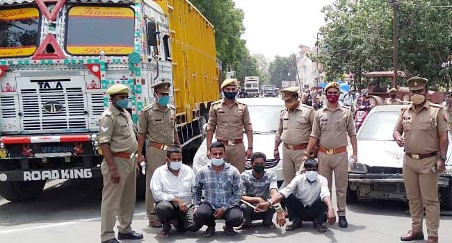 उझानी(बदायूं)। कोतवाली पुलिस ने मुठभेड़ के बाद अन्तर्राज्जीय वाहन चोर गिरोह के सरगना समेत चार चोरों को गिरफ्तार कर दो कारों और एक ट्रक व डीसीएम समेत चार वाहन और अवैध हथियार व कारतूस बरामद कर बड़ी सफलता हासिल की है। इस दौरान एक वाहन चोर भागने में कामयाब रहा जिसकी पुलिस ने तलाश शुरू कर दी है। पुलिस ने पूछताछ के बाद सभी का चालान कर अदालत में पेश किया जहां से वाहन चोरों को जेल भेज दिया गया है।