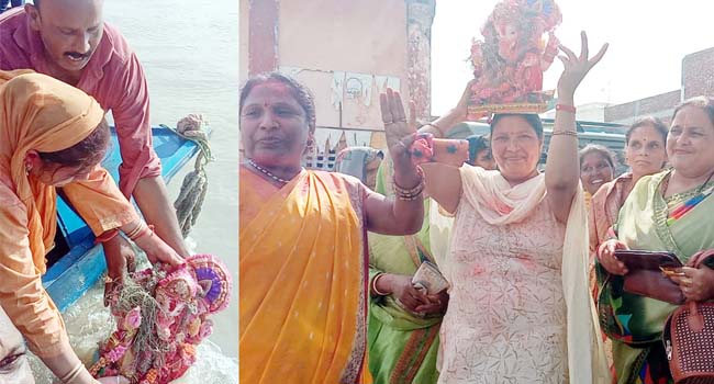 गणेश उत्सव के समापन का शुभारंभ होने पर बदायूं जनपद समेत आसपास के जनपदों से लोग गणेश प्रतिभाएं लेकर कछला स्थित गंगा तट पर पहुंच कर प्रतिभाओं को गंगा में विसर्जित करने लग गए है। गणेश विसर्जन का शुभारंभ हो चुका है लेकिन इसके बाद भी जिला प्रशासन ने कछला गंगा तट पर अभी तक व्यवस्थाओं को दुरूस्त नही किया है। गणेश भक्त नावों के जरिए गणेश प्रतिभाओं को विसर्जित कर रहे हैं।