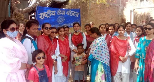 एनएसएस शिविर के पांचवे दिन छात्राओं ने ग्रामीणों को शिक्षा के प्रति जागरूक किया। छात्राओं ने ग्रामीणों महिलाओं को शिक्षा का महत्व बताया और कहा कि वर्तमान समय में अगर प्रगति करनी है तो उन्हें बच्चों को शिक्षित करना होगा। इस अवसर पर छात्राओं ने ग्रामीणों ने उनके बच्चों के बारे में जानकारी ली और स्कूल न जाने वाले बच्चों को स्कूल भेजने के लिए जागरूक किया साथ ही बच्चों में पेन, पेंसिल और कापियां भी बांटी। कार्यक्रम अधिकारी नवीन कुमार ने कहा कि हम सभी यह संकल्प लें कि कोई भी बच्चा स्कूल जाने से वंचित न रहे। उन्होंने कहा कि शिक्षित समाज ही प्रगति की ओर बढ़ता है। इस अवसर पर डॉ. सरला शर्मा ने कहा कि शिक्षा प्रत्येक बालक का मूल अधिकार है। शिखा शर्मा ने ’’ हो जाओं तैयार स्कूल चलें हम’ कविता के माध्यम से जन सामान्य में जागरूकता उत्पन्न की।