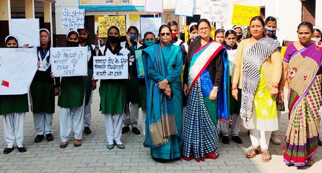 उझानी,(बदायूं)। नगरपालिका अशर्फी देवी कन्या इंटर कालेज में सोमवार को राष्ट्रीय सेवा योजना इकाई के निर्देशन में मतदाता जागरूकता अभियान के तहत स्लोगन प्रतियोगिता का आयोजन किया गया जिसमें छात्राओं ने प्रतिभाग किया। प्रतियोगिता के माध्यम से छात्राओं ने लोगों से अपील की गई है कि वह युवा मतदाता जो 18 वर्ष के हो चुके हैं या एक जनवरी 2022 को 18 वर्ष के होने जा रहे हैंए मतदाता सूची में अपना नाम अवश्य सम्मलित करवाएंए जिससे वे भविष्य में अपने मताधिकार का प्रयोग कर सकें।