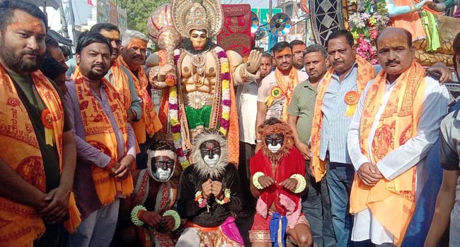 सोमवार को समिति के तत्वावधान में मुख्य चैराहा स्थित पंचमुखी हनुमान मंदिर से अपराह्न तीन बजे पंचमुखी हनुमान की पूजा अर्चना के उपरांत हनुमान शोभायात्रा का शुभारंभ हुआ। भगवान राम के दरबार के अलावा विभिन्न देवी देवताओं की सुन्दर झांकियों और काली अखाड़ों से सजी भव्य शोभायात्रा धूमधाम के साथ कछला रोड, गंजशहीदा, बाजारकला, साहूकारा, भर्राटोला, नझिायाई, किलाखेड़ा, लालमन की पुलिया, बिल्सी रोड, मुख्य चैराहा, स्टेशन रोड, हनुमानगढ़ी मंदिर परिसर पहुंची जहां हनुमान जी की पूजा अर्चना की गई और इसके बाद शोभायात्रा पुरानी अनाज मंडी होती हुई पंचमुखी हनुमान मंदिर पर पहुंच कर धार्मिक अनुष्ठानों के रूप में विसर्जित हो गई। शोभायात्रा में दिल्ली से आए कलाकारों ने हनुमान और वानर सेना के स्वरूप में साथ चल रहे थे जो जनमानस में आस्था व श्रद्धा का केन्द्र बने हुए थे वही धोड़ा नृत्य लोगों के मन को भा रहा था। बैण्ड बाजों से बज रहे धार्मिक गीत और भगवान के भजनों से नगर का वातावरण धर्ममय हो गया। नगर के अनेकों स्थानों पर नागरिकों ने शोभायात्रा में शामिल लोगों के लिए जलपान कराया और प्रसाद का वितरण किया। हनुमान उत्सव के समापन पर मंदिर में हनुमान जी की आरती उतार कर प्रसाद का वितरण कराया गया। दिल्ली में हनुमान शोभायात्रा के दौरान हुई हिंसा के मद्देनजर भारी संख्या में पुलिस बल तैनात रहा और शोभायात्रा के साथ चल रहा था विशेषकर बिल्सी रोड पर पुलिस व प्रशासनिक अधिकारियों की मुस्तैदी देखी गई। शोभायात्रा में हनुमान भक्त जय श्री राम के जयघोष को बुलंद करते हुए चल रहे थे। इस दौरान संचालक राजेन्द्र प्रसाद बाबा, शिवम गर्ग, किशन शर्मा, डब्बू वाष्र्णेय, पंकज वाष्र्णेय, मनोज वाष्र्णेय, विष्णु वाष्र्णेय, शिवम साहू, संजय मित्तल, मुकेश चंद्र अग्रवाल, आंशू गर्ग, रोहन शर्मा, दीपक सिंघल, अंकित शर्मा, अरविन्द शर्मा समेत भारी संख्या में भक्त साथ चल रहे थेे।