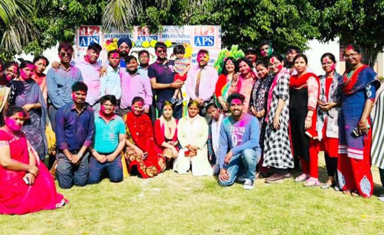 एपीएस स्कूल में धूमधाम से मनाया गया होली का त्यौहार, गुलाल से सराबोर हुए शिक्षक और छात्र