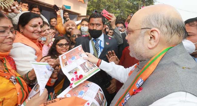 आज शाम बदायूं पहुंचे देश के गृहमंत्री अमित शाह ने पार्टी के नेताओं के साथ जवाहरपुरी इलाकें मंे पहुंच कर घर-घर पत्रक बांट कर प्रदेश की योगी सरकार को पुनः सत्तासीन करने का आह्वान किया। श्री शाह ने जनता को बताया कि प्रदेश में योगी सरकार की वापसी क्यों जरूरी है। इस दौरान उन्होंने सपा समेत अन्य दलों पर जोरदार हमला भी बोला। उन्होंने घरों पर जाकर नागरिकों विशेष कर महिलाओं से 14 फरवरी को सुबह 8 घर से निकल कर बूथ तक पहुंचने की भी अपील की। श्री शाह ने भाजपा प्रत्याशी महेश चंद्र गुप्ता और पुनः उत्तर प्रदेश में भाजपा सरकार बनाने के लिए लिए वोट मांगे।