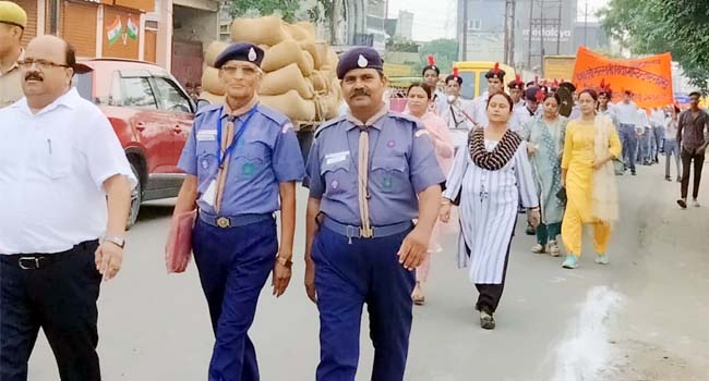 कुंवर रुकुम सिंह वैदिक इंटर कालेज नगला से प्रभात फेरी निकाली गई शहर के तमाम विद्यालय स्काउट गाइड, एनसीसी कैडेट, राष्ट्रीय सेवा योजना के बच्चों ने हिस्सा लिया। जिला विद्यालय निरीक्षक डा. प्रवेश कुमार ने हरि झंडी दिखाकर इस प्रभात फेरी को रवाना किया। शहर के इंद्रा चौक भामाशाह चौराहा होती हुई प्रभात फेरी शहीद स्थल पहुंची।