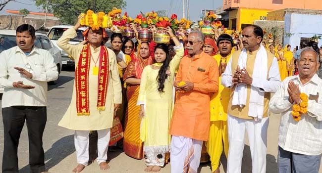 श्री रामकथा प्रवचन ज्ञान यज्ञ सप्ताह के शुभारंभ कर निकली कलश यात्रा