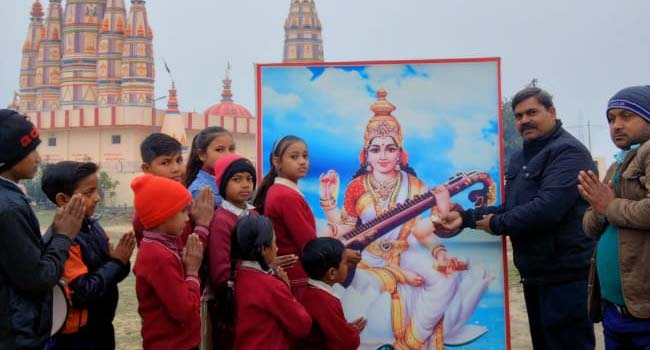 उझानी,(बदायूं)। अब्दुल्लागंज के श्री ओम प्रकाश शर्मा इंटर कालेज में शिक्षक.शिक्षिकाओं और बच्चों ने मां सरस्वती का पूजन किया। बच्चों के विद्यारंभ संस्कार हुए।