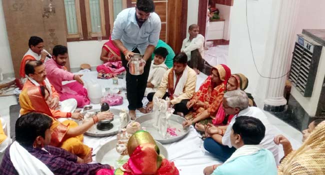 नवनिर्मित में मूर्तियों की प्राण प्रतिष्ठा से पूर्व गुरूदेश पाराशरी समेत अन्य आचार्यो के वैदिक मंत्रोंच्चारण के बीच मूर्तियों की पूजा अर्चना की गई। पूजा अर्चना के बाद मूर्तियों को एक रथ में सवार कर बैण्ड बाजों के साथ भव्य शोभायात्रा निकाली गई जो आशाराम आश्रम स्थित शिव मंदिर एवं मां दुर्गा के मंदिर होती हुई मंदिर पर पहुंच कर धार्मिक अनुष्ठानों के रूप में परिवर्तित हो गई। मंदिर पर हवन का आयोजन किया गया जिसमें मुख्य यजमान डीपी सिंह सौलंकी, सुमन सिंह, डा. त्रिवेन्द्र सिंह, गरिमा सिंह, सतेन्द्र सोलंकी, सुमन, मुकेश कश्यप ऊषा देवी समेत अन्य यजमानों ने नागरिकों के साथ पूर्णाहुति प्रदान की और सर्व समाज के कल्याण की कामना की। धार्मिक अनुष्ठान समापन पर आरती उतार कर प्रसाद का वितरण कराया गया। इस अवसर पर दीपेन्द्र सिंह मनु, देवपाल सिंह यादव, अंसीव सक्सेना, शैलेश चैहान, ओमप्रकाश सिंह चैहान, रानी सिंह पुण्डीर, सुमित गुलाटी, रेनू वर्मा, रूचि यादव समेत भारी संख्या में नर नारी मौजूद रहे।