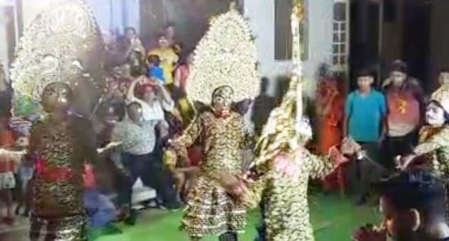 बिसौली(बदायूं) । नगर में मां दुर्गा भव्य शोभायात्रा धूमधाम से निकाली गई। शोभायात्रा में सबसे आगे चल रहे काली अखाड़ों के कलाकारों ने अपने अनूठे करतबों से सभी को मंत्रमुग्ध कर दिया। बाहर से आए कलाकारों ने राधा-कृष्ण नृत्य के द्वारा लोगों का मन मोह लिया।