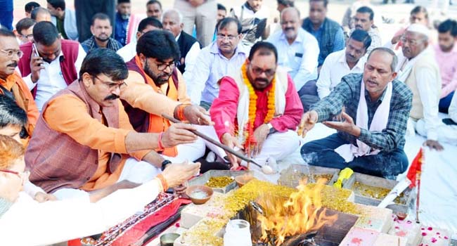 राज्यमंत्री-विधायक ने हवन पूजन कर कराया शेखूपुर चीनी मिल का पेराई सत्र का शुभारंभ