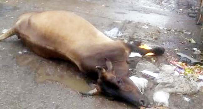 नगर के भदवारगंज इलाके में बकरी नखासा के समीप जर्जर हालत में खड़े बिजली के पोल पर शनिवार को शुरू हुई बरसात के बाद उतरे करंट के चलते रविवार को इसके चपेट में आकर एक गर्भवती गाय की मौत हो गई। करंट का इतना तेज असर था कि कई राहगीर बाल-बाल बच गए। हादसे के दौरान जुटे समाजसेवी युवाओं ने करंट से तड़पती गाय को बचाने का भरकस प्रयास किया मगर वह सफल न हो सके और देखते ही देखते गाय ने दम तोड़ दिया। गाय की मौत के बाद युवाओं ने बिजली विभाग को फोन कर बिजली बंद कराई।