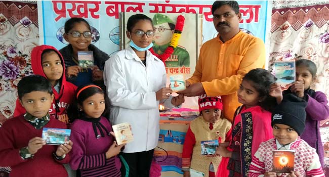 उझानी,(बदायूं)। अखिल विश्व गायत्री परिवार के मार्गदर्शन में चल रहे प्रखर बाल संस्कारशाला के कैंप कार्यालय पर बच्चों ने नेता जी सुभाष चंद्र बोस की जयंती पराक्रम दिवस के रूप में मनाई। इस अवसर पर प्रतिभाशाली बच्चों को सम्मानित किया गया।
