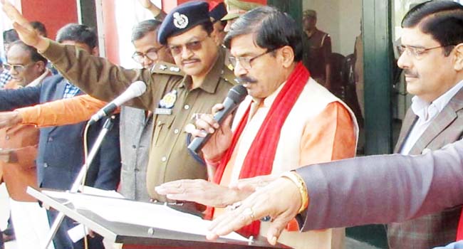 बदायूं। सदर विधायक महेश चन्द्र गुप्ता ने जिलाधिकारी मनोज कुमार, वरिष्ठ पुलिस अधीक्षक डॉ0 ओपी सिंह की मौजूदगी में देशव्यापी सड़क सुरक्षा अभियान के क्रम में जनपद स्थित दिल्ली पब्लिक स्कूल के परिसर में सुरक्षित यातायात के दृष्टिगत जन जागरूकता अभियान के अंतर्गत स्कूली बच्चों, शिक्षकों, अधिकारियों, कर्मचारियों एवं अन्य गणमान्य व्यक्तियों को सुरक्षित यातायात का संकल्प एवं यातायात नियमों का पालन करने सम्बंधी शपथ दिलाई गयी।