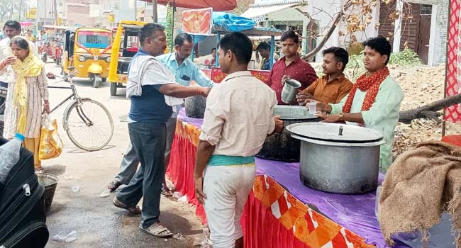 मंदिर के पुजारी शिवम शर्मा के नेतृत्व में आज गंगा दशहरा पर मंदिर के बाहर एक शिविर लगा कर गंगा श्रद्धालुओं और राहगीरों को भीषण गर्मी से बचाने के लिए मीठा शर्बत का वितरण किया गया। मीठे शर्बत के वितरण का सिलसिला सुबह शुरू किया गया जो देर शाम तक चलता रहा। गंगा स्नान का आ-जा रहे श्रद्धालुओं और राहगीरों ने बड़े ही मनोयोग से शर्बत पीकर भक्तों को आशीष दिया। इस अवसर पर मंदिर के महंत शिवम शर्मा, केपी सिंह सोलंकी, डा. प्रदीप गुप्ता, अमन सोलंकी, जितेेन्द्र शर्मा, अन्नू राठौर, अजय मौर्य, चिराग, अमित, पुष्पेन्द्र यादव, अर्जुन राठौर, संजय शंखबार, विनय श्रीवास्तव, राजन शर्मा, साजन शर्मा, गुडनेश सिंह आदि भक्त मौजूद रहेे।