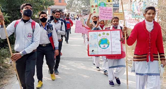 कालेज परिसर से राष्ट्रीय सेवा योजना के तत्वावधान में निकाली गई रैली में छात्र छात्राओं ने स्लोगन लिखी पट्काएं और पोस्टर के माध्यम से नागरिकों को ओमिक्रान और कोरोना जैसे वायरस से बचाने के लिए भीड़ भाड़ वाले स्थानों पर मास्क का प्रयोग करने, वैक्सीन लगवाने तथा घर व कार्य स्थल पर स्वच्छता रखने के लिए जागरूक किया। रैली में मौजूद विद्यार्थियों ने पूरे नगर में घूम कर नागरिकों को जागरूक किया। इस दौरान वक्ताओं ने कहा कि दो साल से कोरोना का कहर पूरे विश्व ने झेला है लेकिन अब डेल्टा और ओमिक्रान जैसे वायरस ने एक बार फिर से विश्व के कई देशों को अपनी चपेट मंे लेकर मानव जाति के लिए खतरा बन चुुका है। वक्ताओं ने कहा कि इस वायरस से भारत भी अछूता नही रह सका है। इस अवसर पर चीफ प्राक्टर डा. त्रिवेन्द्र सिंह, डा. जितेन्द्र सिंह राणा, डा. शुचि गुप्ता, डा. महेश पाल सिंह यादव, आदर्शकांता, प्रो. शिशुपाल सिंह समेत तमाम शिक्षक मौजूद रहे।